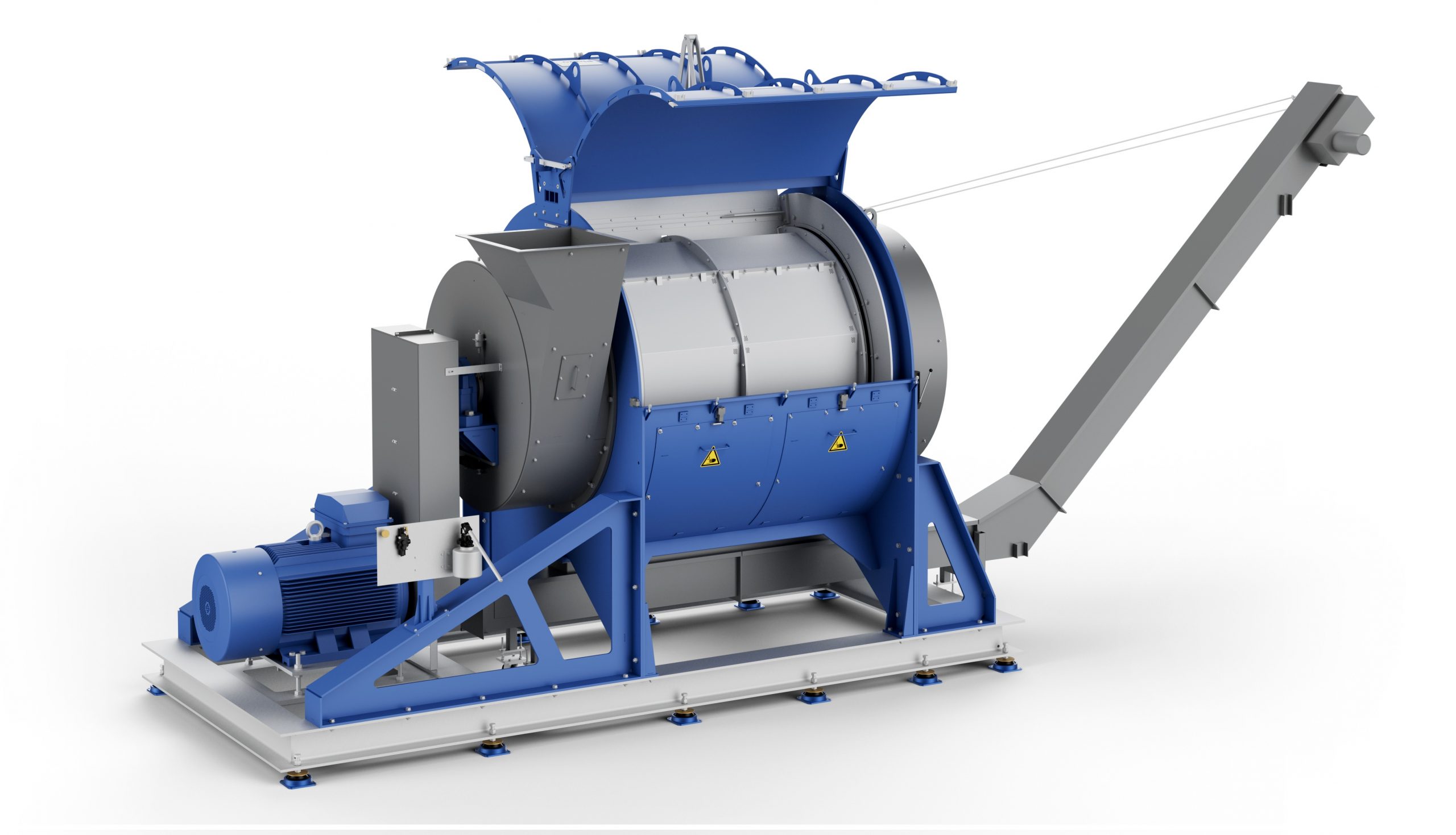 For drying after washing, our high-spin dryer works with high rotation, a long rotor and many blades. Particularly thin-walled films can be dewatered well in this way. The internal friction dissolves any remaining contaminants and these are removed by the automatic cleaning system with the spun off water.