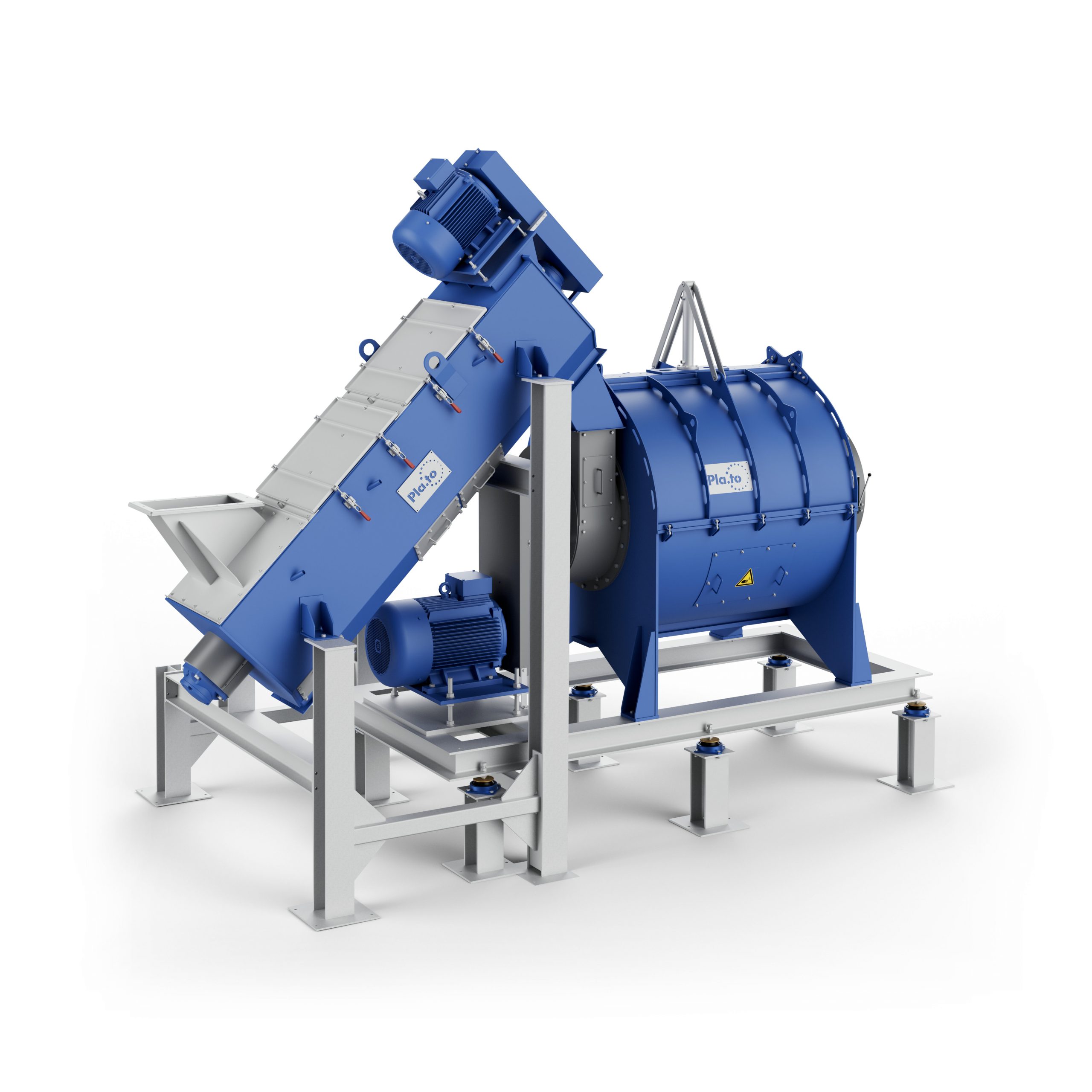 For stubborn contaminants, we offer the friction washer and the intensive washer as a single unit. The friction washer circulates the used plastic with water, thereby soaking and loosening the contaminants. A thorough post-cleaning and mechanical dewatering take place in the intensive washer.