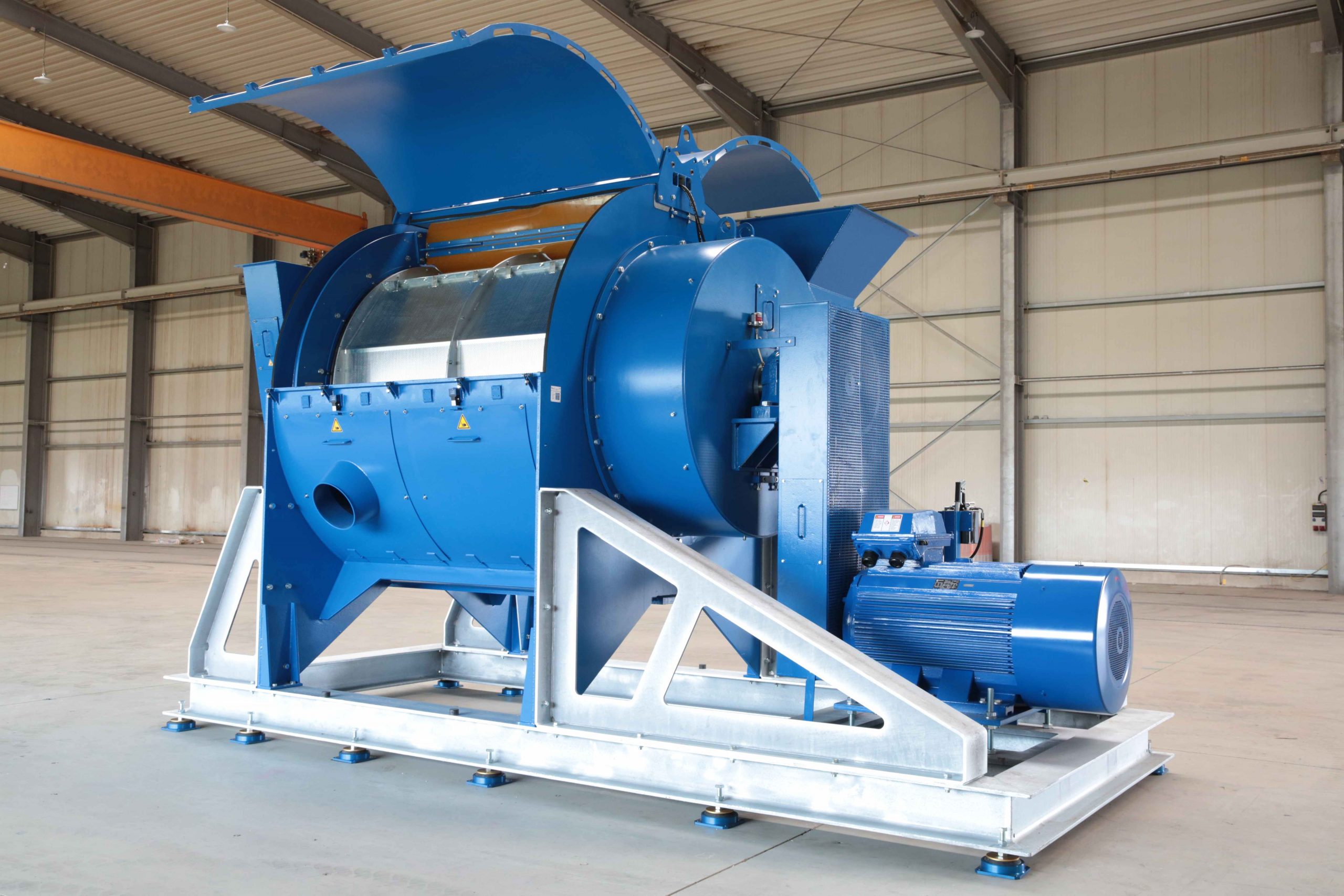 Inside the centrifuge, a rotor with hardened blades rotates surrounded by a filter basket through which loosened contaminants pass and are sucked out of the machine by a strong vacuum.