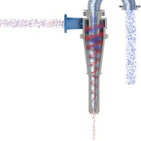 Die am Maschinenmarkt angebotenen Trennbehälter sind meist falsch konstruiert. Starke Wasserströmungen überlagern die Dichtetrennung im Schwerkraftfeld. Zudem sorgen am Kunststoff anhaftende Luftbläschen dafür, das eigentlich schwere Partikel aufschwimmen. Im Ergebnis sind viele Kunststoffe nicht richtig sortiert. Diese Nachteile schliesst der Hydrozyklon aus.